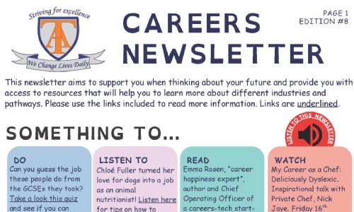 This newsletter aims to support you when thinking about your future and provide you with access to resources that will help you to learn more about different industries and pathways. Please use the links included to read more information. Links are underlined.