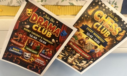 Miss Harrison is running a Drama Club every Tuesday and Thursday at lunchtime, and a Chess Club every Wednesday at lunchtime.