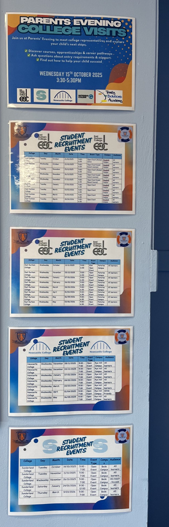 Here are some upcoming dates and times where you can visit East Durham College, Sunderland College and Newcastle College.