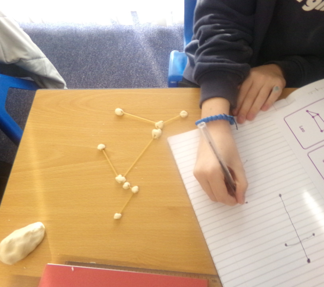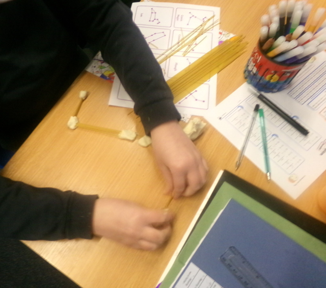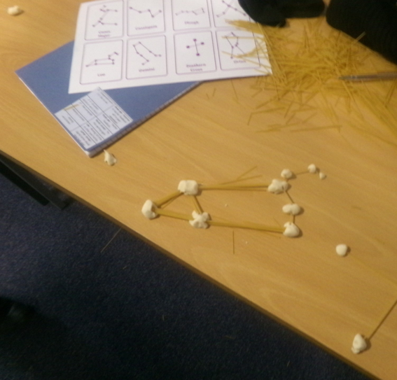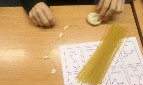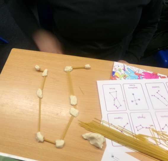 To explore this further, the children made their own constellations using spaghetti and salt dough. They carefully rolled the dough into small balls to represent stars and used pieces of spaghetti to join them together. This hands-on activity helped develop their fine motor skills as well as their creativity.